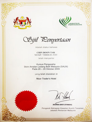 • Chin Sam Chiap Plantation Sdn Bhd achieved with a Malaysia's Best Certificate by Lembaga Pemasaran Persekutuan (FAMA). |